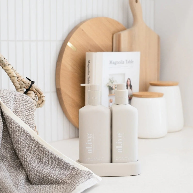 The al.ive body Hand Wash & Dishwashing Liquid Premium Kitchen Duo is a beautiful yet practical product, elegantly packaged to elevate your countertop.