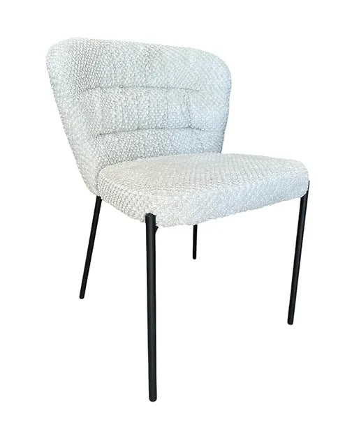 The Lulu Lux Dining Chair, featuring a roused textured fabric that adds a sophisticated touch to any dining room.  This chair offers both comfort and durability, perfectly aligned with Vogue Home Furniture commitment to high-quality furniture solutions.