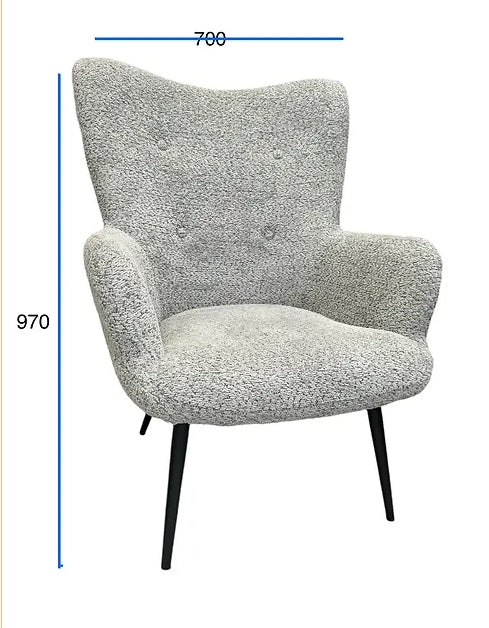 The West Elme Occasional Chair from Vogue Home Furniture, for high-featuring a high back and modern aesthetics, this chair exudes elegance with its textured fabric in grey and white. Its sophisticated design complements any decor while providing the comfort you deserve. Perfectly suited for both casual lounging and formal settings, the West Elme Occasional Chair blends seamlessly into your lifestyle. Experience furniture that doesn't just furnish your home but elevates it.